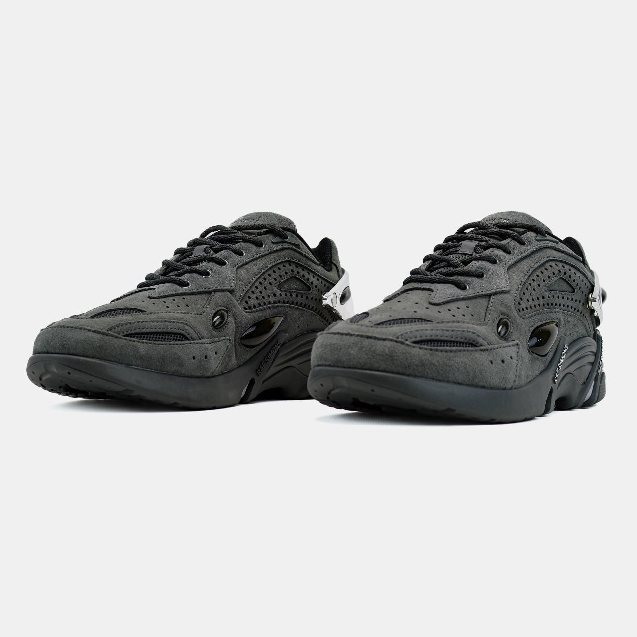 Масивна підошва з амортизацією дарує м’якість кожного кроку, а комбінований верх із преміальних матеріалів забезпечує комфорт і виразний вигляд. Фірмові деталі Raf Simons та характерні акценти роблять модель справжнім арт-об’єктом у світі кросівок.